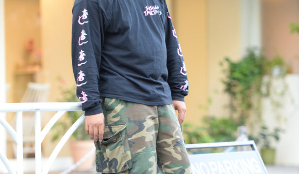 ロングスリーブは秋には重宝したいアイテム。ビーニーとCONVERSEでちょこちょことアクセントをつけつつ、胸元には、ん…?「SUSHIGATABETAIDES」との文字が(笑)。吉川雄太さん107kg/183cm/Age:35